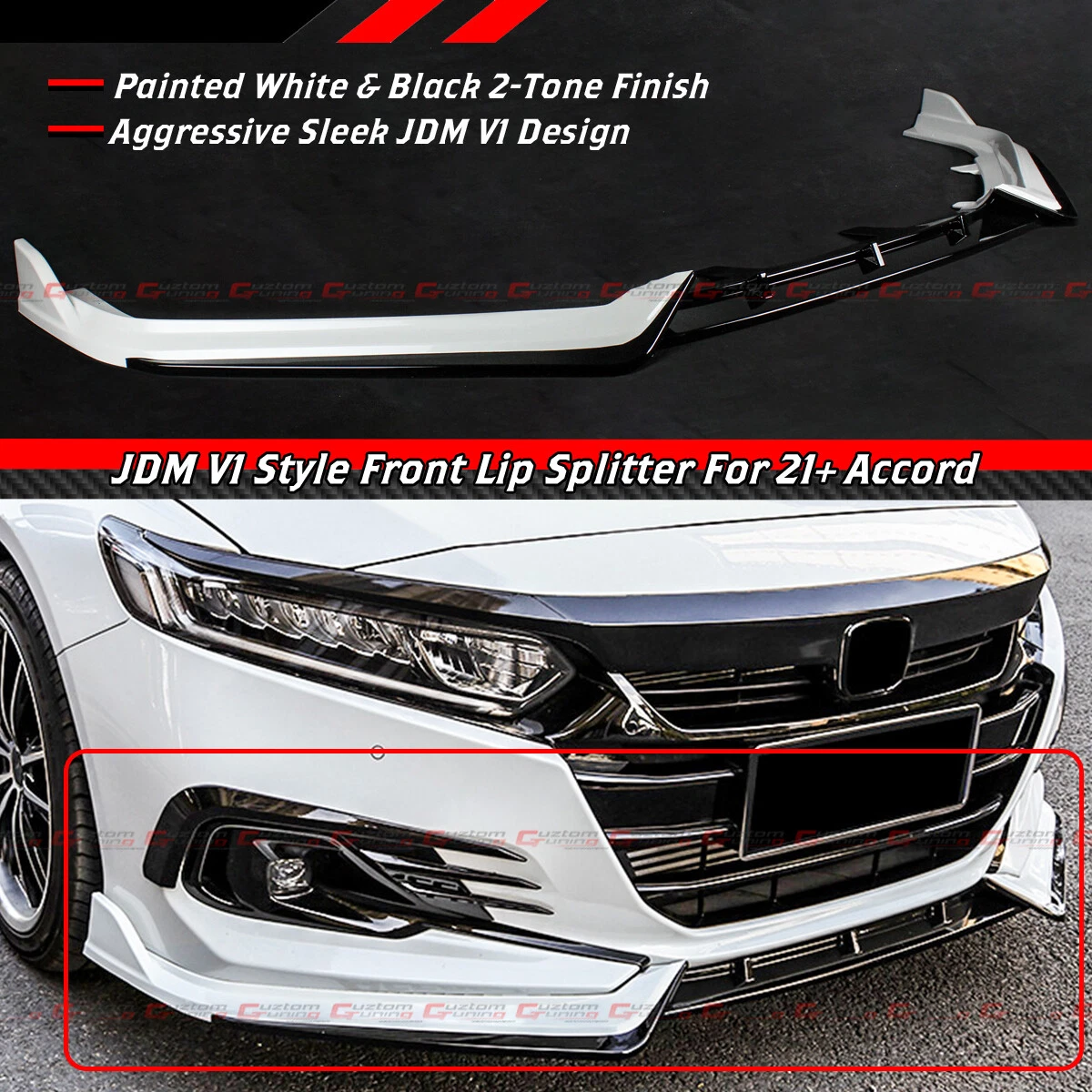 For 2021 2022 Honda Accord V1 Jdm 2 Tone White Black Front Bumper Lip Splitter Ebay